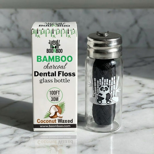 Dental Floss Glass Bottle & 8 Pack Refill, Coconut Flavor