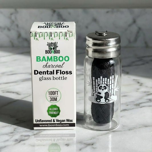 Dental Floss Glass Bottle & 8 Pack Refill, Mint Flavor