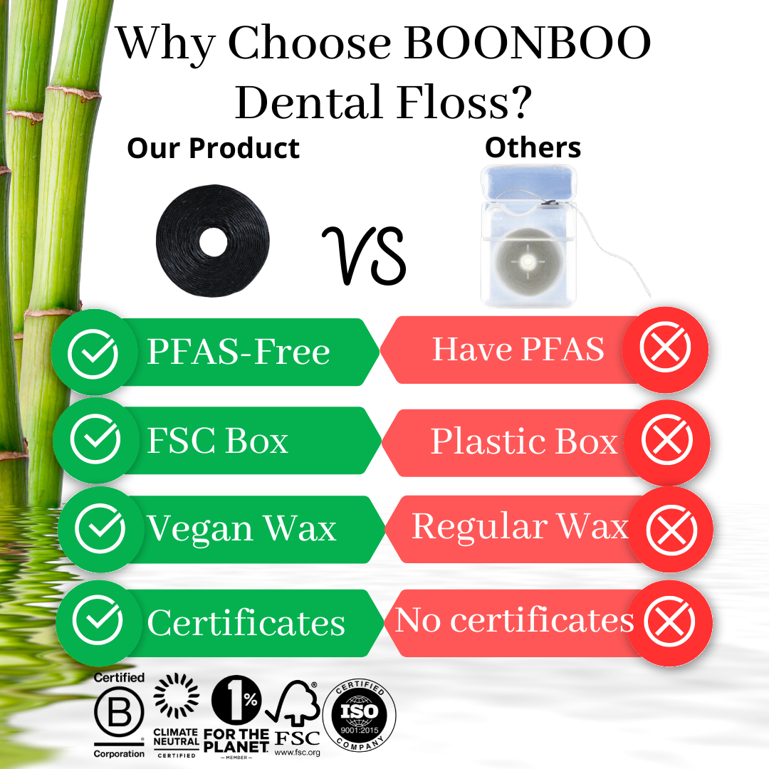 A 2-pack refill provides a longer-lasting supply of floss while reducing the need for frequent reordering. With BOONBOO refills, you minimize packaging use and support a more efficient, low-waste oral-care routine — especially when combining refills with a reusable dispenser.